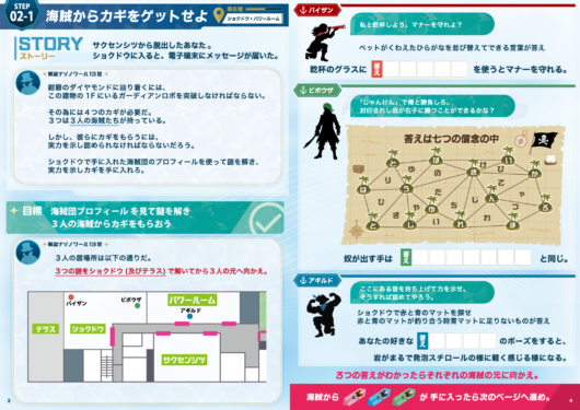 物語を進めていくと「宿泊施設」や「トレーニングルーム」、さらには実際に競技で使用するボートなどを保管している「艇庫」などの普段は入れないエリアにも足を踏み入れることになります。ストーリーに登場する海賊たちとの対峙や、奪われた秘宝の手がかりを追うための「金庫探し」といったミッションを通じてその場所に立ち寄ることで、「ここって泊まれるんだ!」「一般でも使えるアスリート仕様のジムがあるんだ!」という驚きを伴う認知を生み出し、施設が持つ様々なポテンシャルを印象深く伝えました。