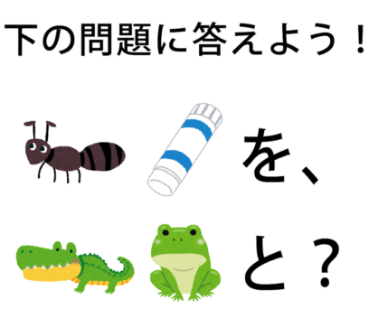 4つのイラストを文字に変換して文を読んでみると、「あり のり を、 わに かえる と?」となります。