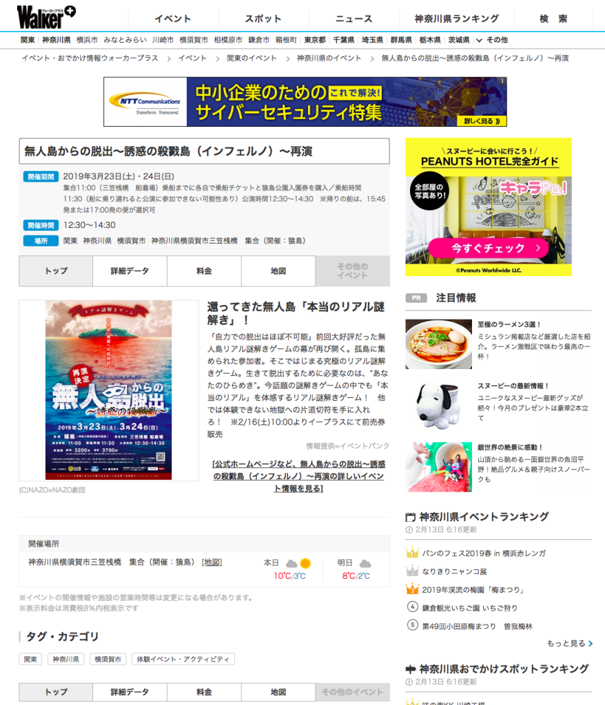walkerplus様に「無人島からの脱出~誘惑の殺戮島(インフェルノ)~再演」が紹介されました。
