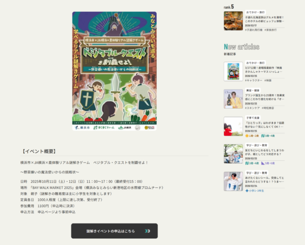 あんふぁん 様に「ベジタブル・クエストを制覇せよ!〜野菜嫌いの魔法使いからの挑戦状〜」が紹介されました。