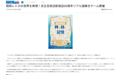 西新宿LOVEWalker 様に「京王百貨店新宿店 開店60周年記念リアル謎解きゲーム「時を紡ぐ記憶(ダイヤモンド)」」が紹介されました。