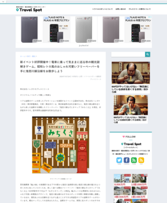トラベルスポット 様に「リアル謎解きSDGs『アジェンダーズと地球の危機に立ち向かえ』in 530のまち環境フェスタ」が紹介されました。