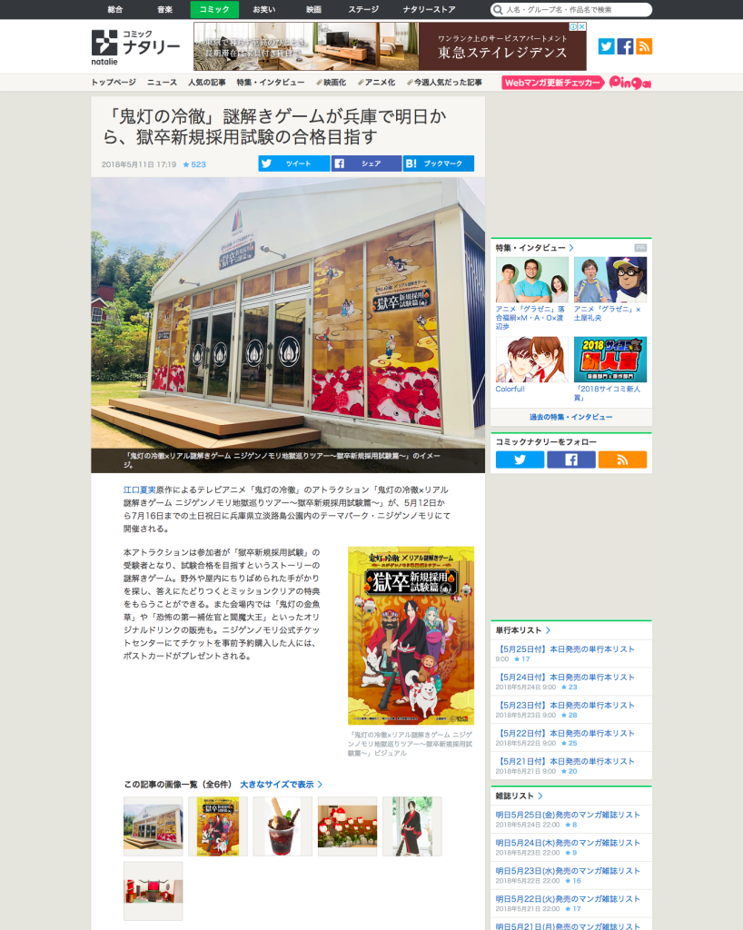 コミックナタリー様に鬼灯の冷徹×リアル謎解きゲーム ニジゲンノモリ地獄巡りツアー 獄卒新規採用試験篇が掲載されました!