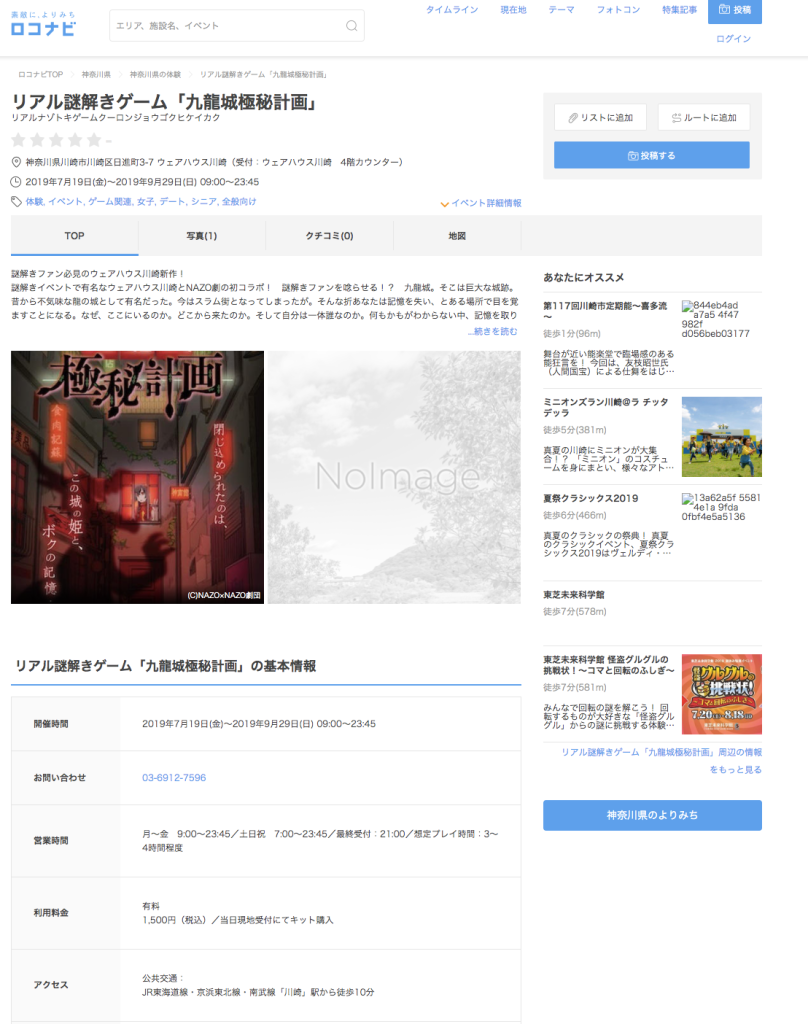 名 称:リアル謎解きゲーム「九龍城極秘計画」